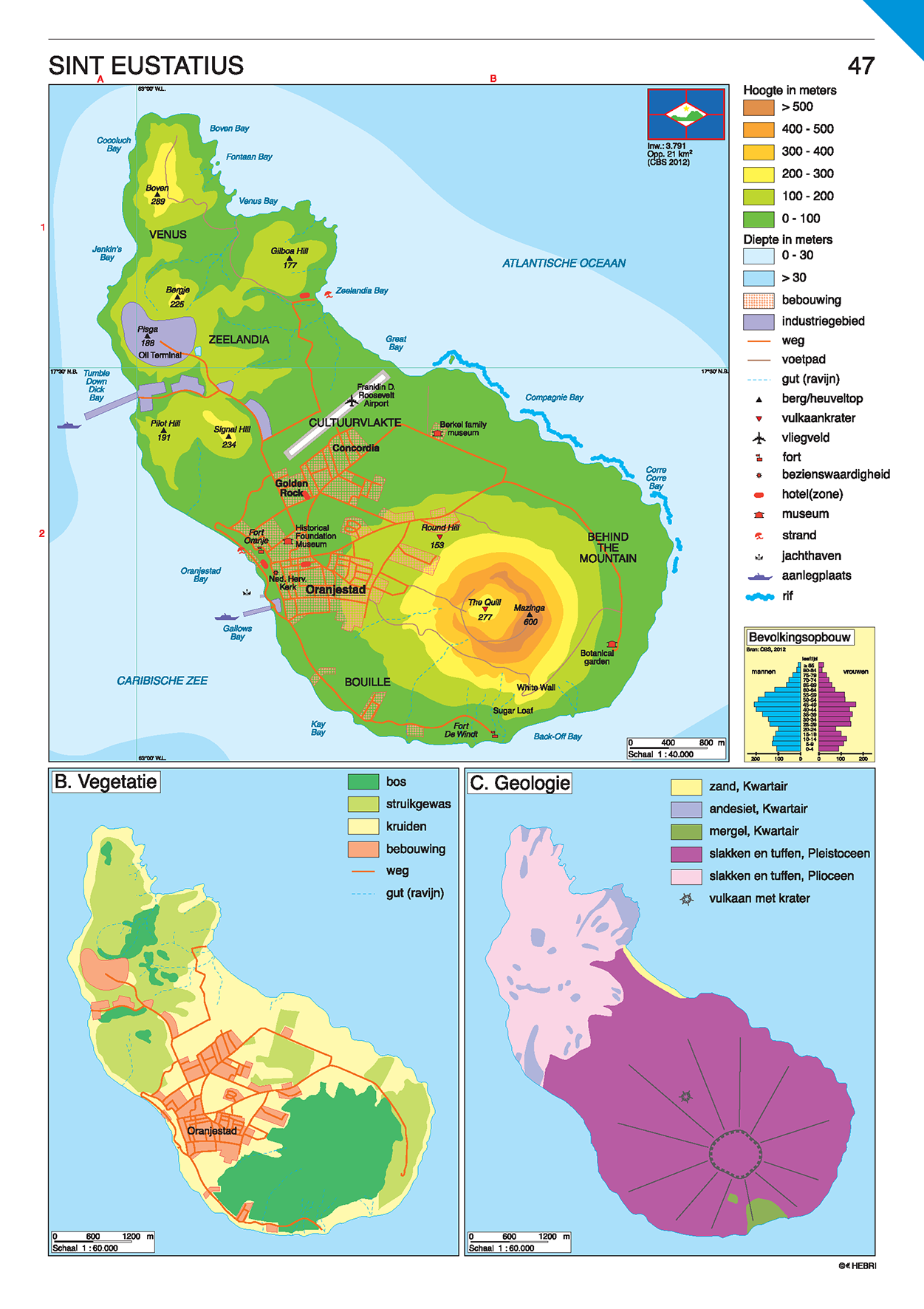 Een kaartleesmethode bij de atlas zorgt ervoor dat alle leerlingen optimaal gebruik leren maken van de atlas en leren kaartlezen, maar ook kaarten analyseren. De werkboeken leren ook topografie van de eilanden, het Caribisch gebied en de rest van de wereld.